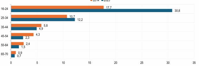 Un dato particolarmente allarmante riguarda le giovanissime (16–24 anni), che risultano sempre più esposte.
