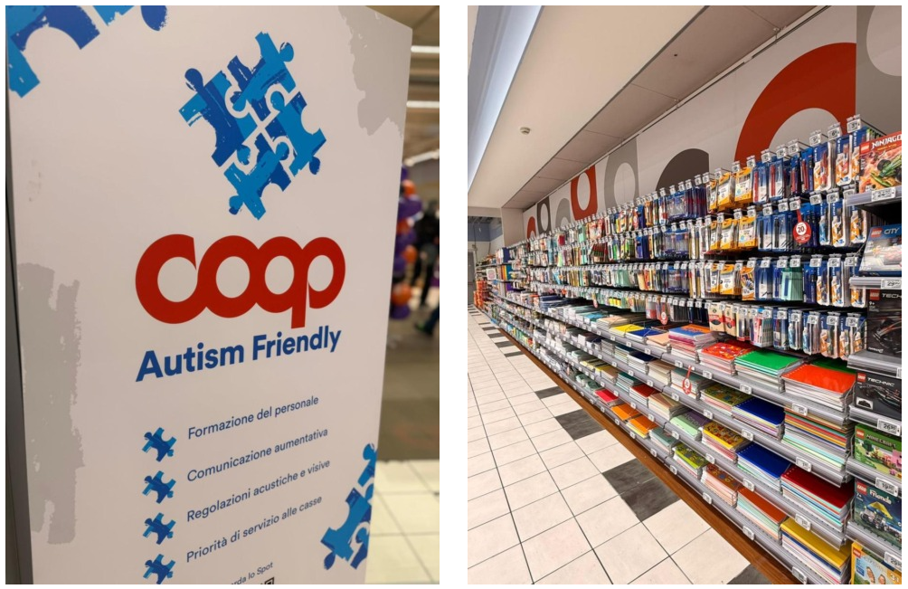 Il supermercato presenta caratteristiche specifiche per accogliere persone con disturbi dello spettro autistico, ottenendo la certificazione Autism Friendly. La progettazione degli spazi ha previsto la riduzione degli stimoli sensoriali attraverso un’illuminazione uniforme, colori rilassanti e interventi sul comfort acustico. Le corsie sono state allargate e la segnaletica completamente ridisegnata per facilitare l’orientamento. Il personale ha ricevuto una formazione dedicata e il negozio utilizza sistemi di Comunicazione Aumentativa e Alternativa. Si tratta di un approccio che Coop Lombardia intende estendere progressivamente agli altri punti vendita della rete.
