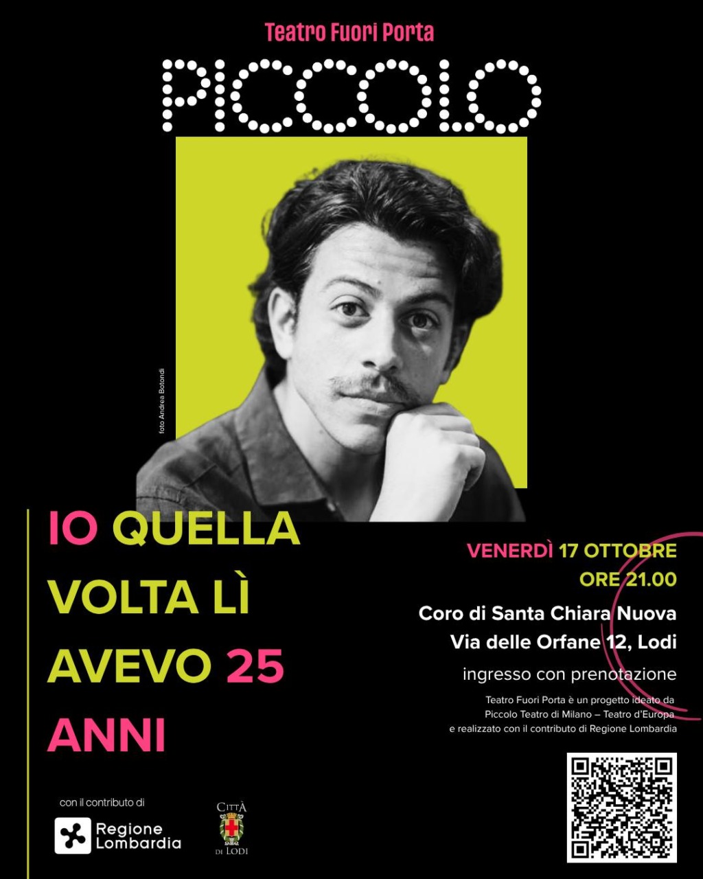 Francesco Centorame arriva nella provincia di Lodi per un incontro imperdibile che si terrà venerdì 17 ottobre 2025, in Coro di Santa Chiara Nuova, portando in scena il testo in prosa scritto dai due autori alla fine degli anni Novanta.