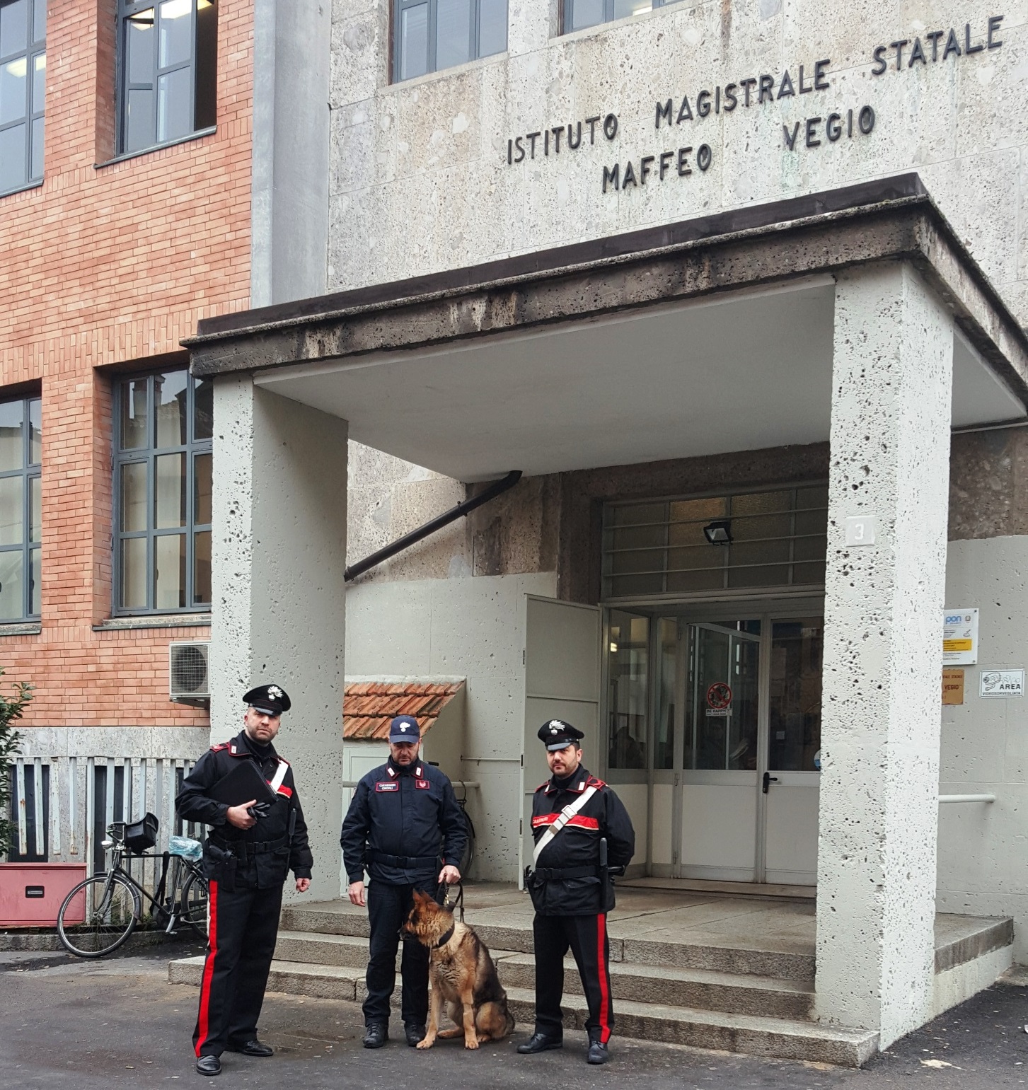 Droga al liceo: unità cinofile all’Istituto Maffeo Vegio per la prevenzione dello spaccio e dell’uso di sostanze stupefacenti.