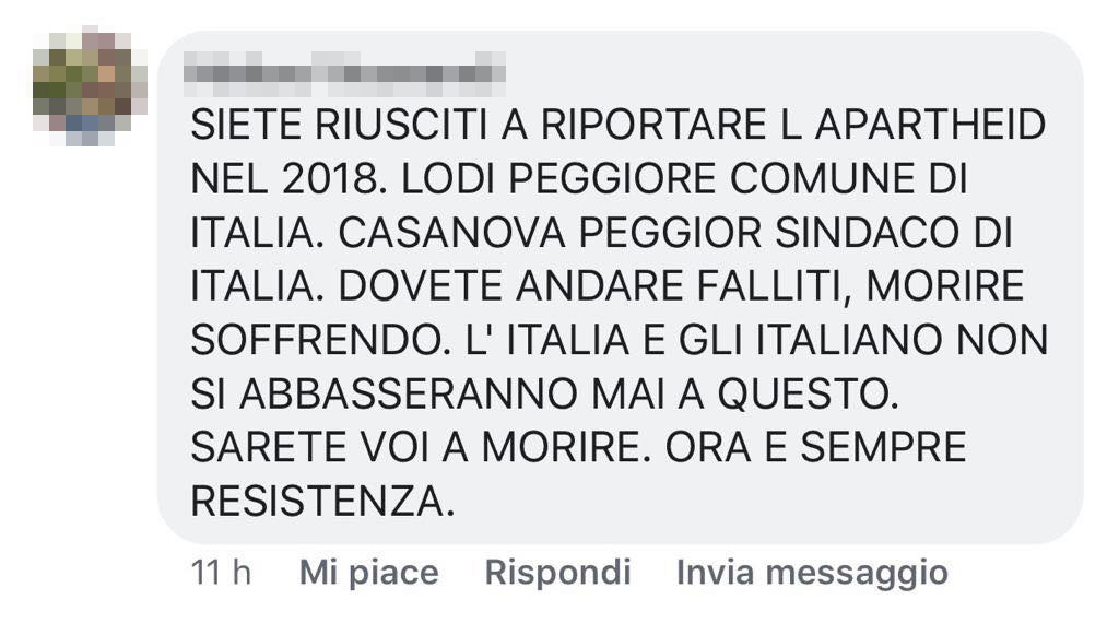 Ci siamo rivolti, dopo aver notato alcune frasi di una violenza inaudita sui social, ai tre attori principali della bufera politica lodigiana, per raccogliere le prove più preoccupanti relative al clima cittadino. Per ciò che concerne la Giunta Casanova, fra gli episodi più incresciosi si annovera senza dubbio quello segnalato dalla consigliera Eleonora Ferri che ha reso pubblico uno screenshot di augurio di aborto rivolto al sindaco Sara Casanova, in dolce attesa.