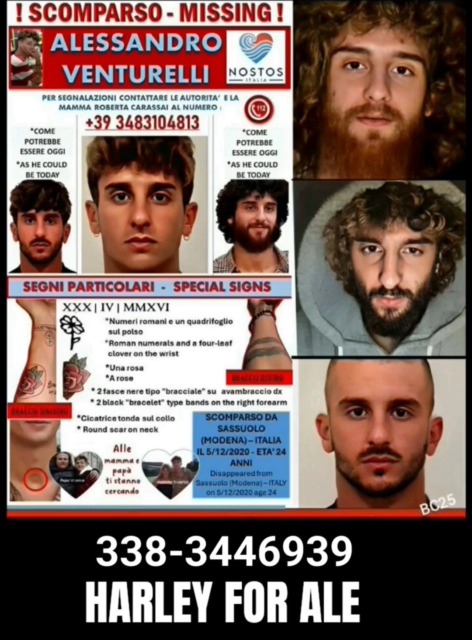 Chi l’ha visto torna a parlare di Alessandro Venturelli, l’allora 20enne scomparso nel 2020 da Sassuolo (Modena), allontanatosi volontariamente da casa senza fare più ritorno. Diverse segnalazioni partite nell’ultimo periodo hanno riacceso la fiamma della speranza, mai spenta negli occhi della madre Roberta Carassai.