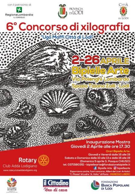 Dal 2 al 26 aprile, gli spazi di Bipielle Arte ospitano il 6° Concorso di Xilografia “Ugo Maffi Città di Lodi”, organizzato dal Rotary Club Adda Lodigiano. L’inaugurazione si terrà giovedì 2 aprile, alle ore 17.30. L’evento ha lo scopo di tenere viva l’attenzione dei cultori e degli appassionati della grafica verso la tecnica antichissima e nobile dell’incisione su legno, già utilizzata in Occidente agli albori del XV secolo.