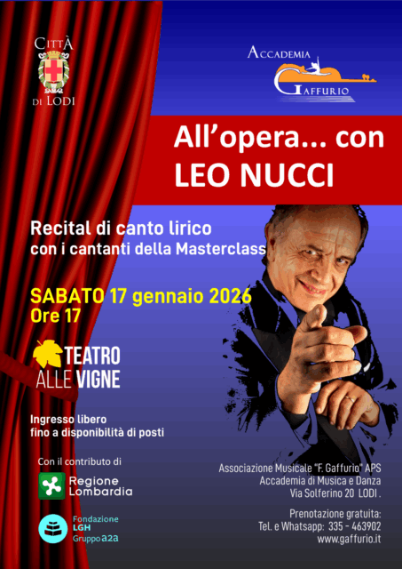 L’ingresso è libero fino a disponibilità di posti, ma è consigliata la prenotazione gratuita al numero 335 463902 (dalle 14 alle 19). In scena le interpretazioni delle più belle ed emozionanti pagine del belcanto con le voci dei cantanti da lui preparati. Il concerto è realizzato in collaborazione con il Comune di Lodi e con il contributo di Regione Lombardia e Fondazione LGH.