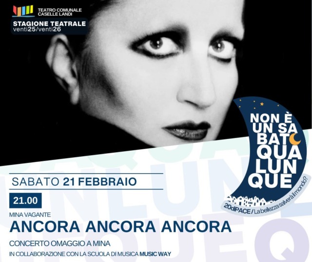 L’emozione della grande musica italiana rivive sul palco del Teatro Comunale di Caselle Landi con un evento interamente dedicato alla Tigre di Cremona. “Ancora ancora ancora” è il titolo del concerto omaggio a Mina, in programma per la serata di sabato 21 febbraio alle ore 21, con la collaborazione della scuola di musica Music Way.