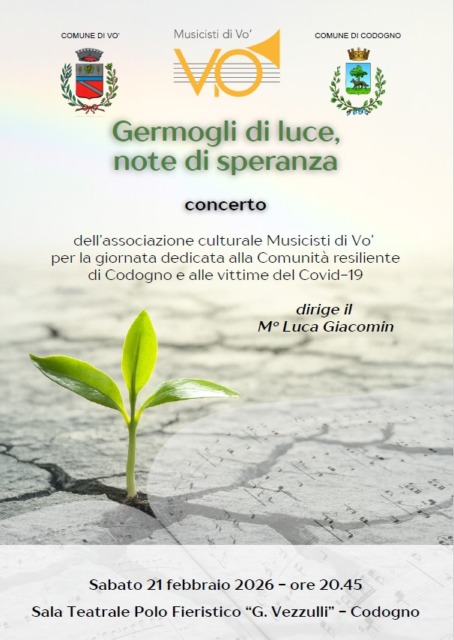 Le note della solidarietà risuonano in un evento dal profondo valore civile e commemorativo: “Germogli di luce, note di speranza”. Il concerto, eseguito dall’associazione culturale Musicisti di Vo’ e diretto dal Maestro Luca Giacomin, nasce in memoria delle vittime del Covid-19 a sei anni dallo scoppio della pandemia.