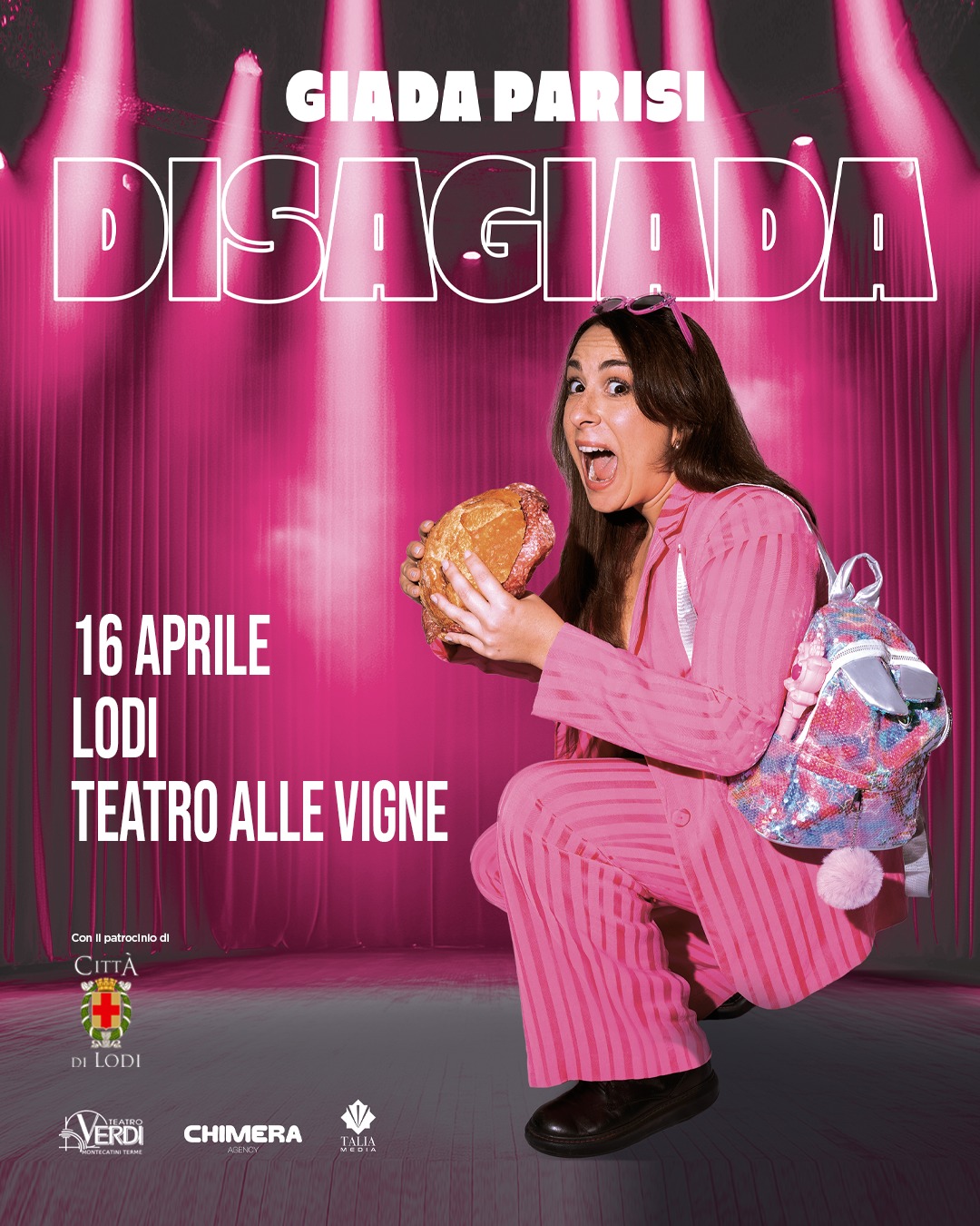 Questa sera, 16 aprile, alle ore 21.00, il Teatro alle Vigne di Lodi ospita Giada Parisi con il suo nuovo progetto intitolato “Disagiada”.